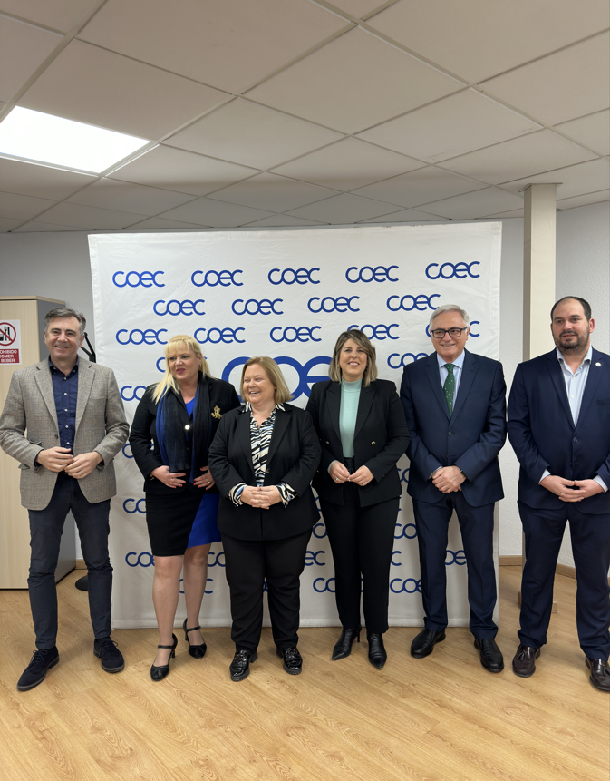 La Confederación Comarcal de Organizaciones de Cartagena (COEC) ha acogido hoy en su sede una reunión con los alcaldes de los municipios de la Comarca del Campo de Cartagena para tratar diversos asuntos estratégicos y coordinar las líneas de trabajo entre la patronal y los consistorios. A este encuentro han asistido Ana Correa, presidenta de COEC; Noelia Arroyo, alcaldesa de Cartagena; Pedro Javier Sánchez Aznar, alcalde de San Pedro del Pinatar; Mario Pérez Cervera, alcalde de Los Alcázares; Pedro Ángel Roca, alcalde de Torre-Pacheco y María Teresa López, concejala de Hacienda y Contratación de La Unión.